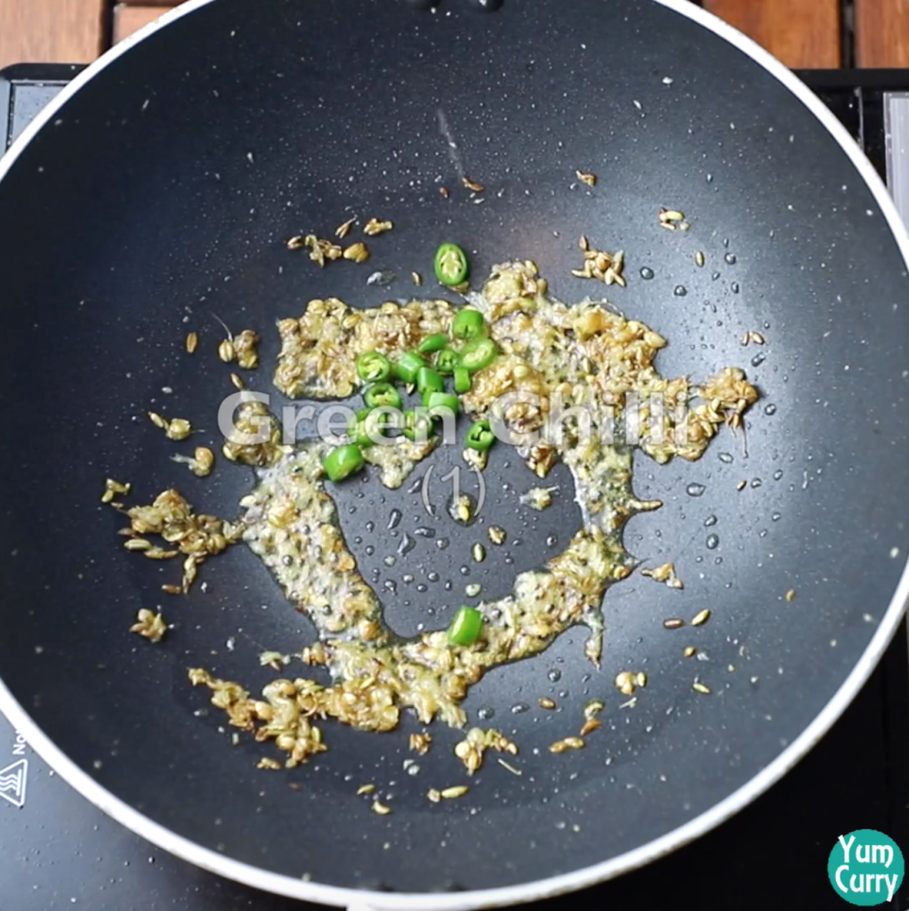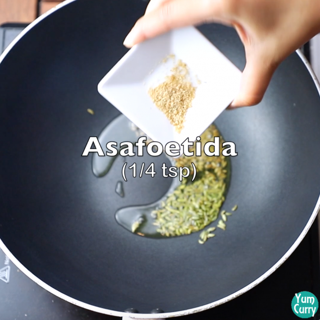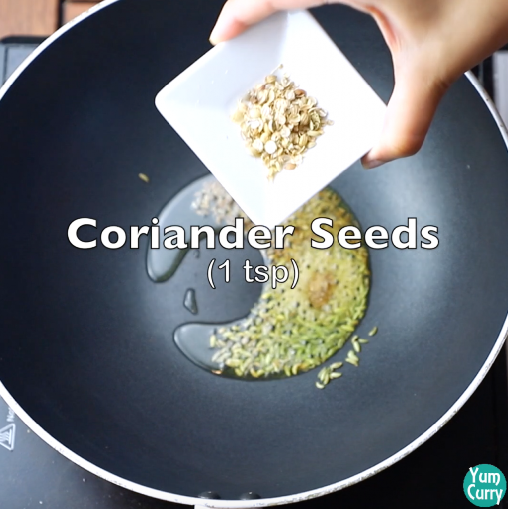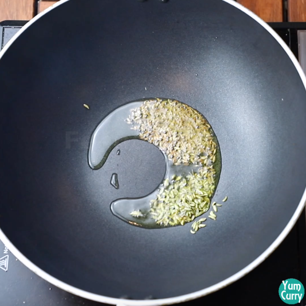 • Add cumin seeds, fennel seeds, asafoetida, coriander seeds and ginger paste to it. Saute for a while on low-medium heat.