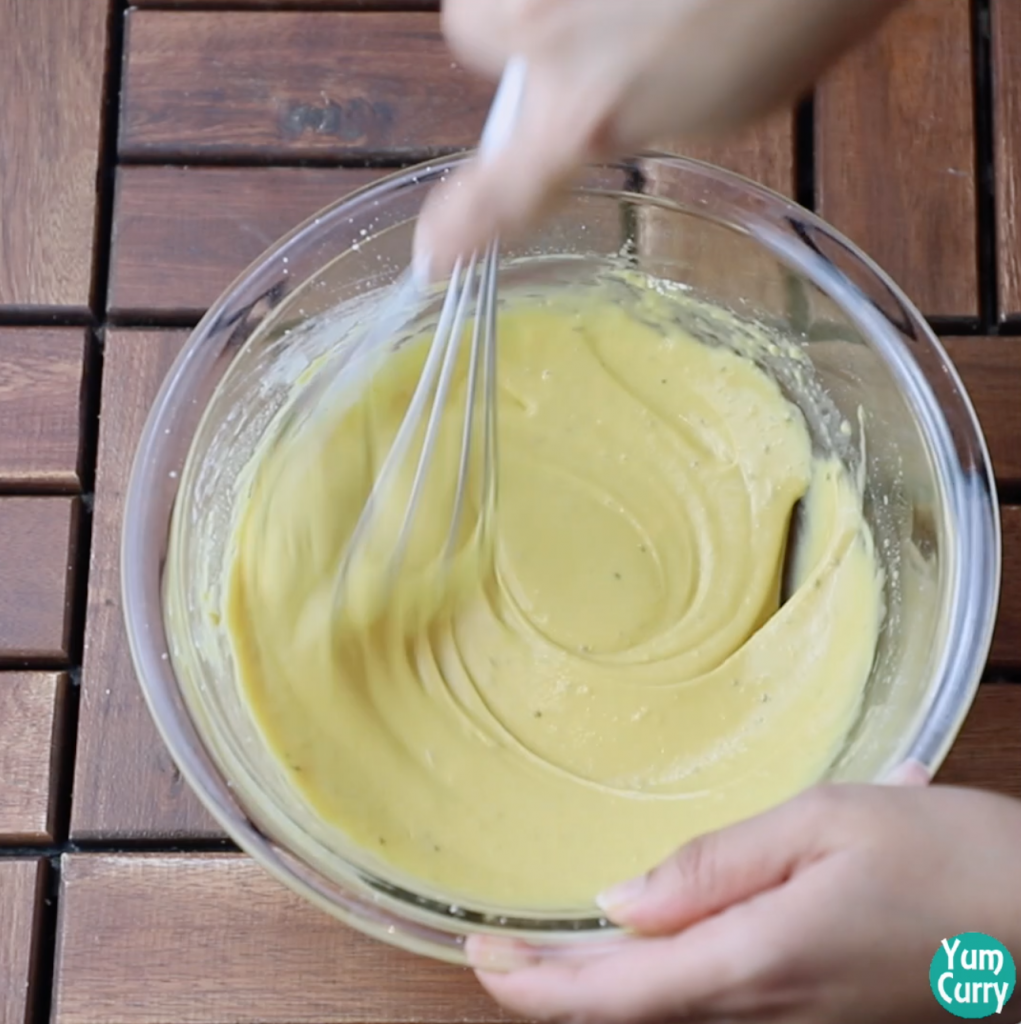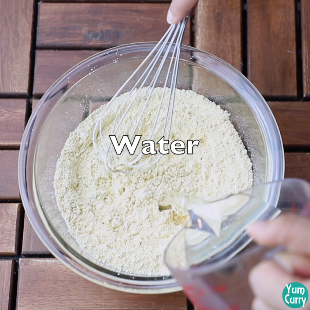 7. Now start adding water, small portions at a time and keep mixing. Prepare a little thick batter.