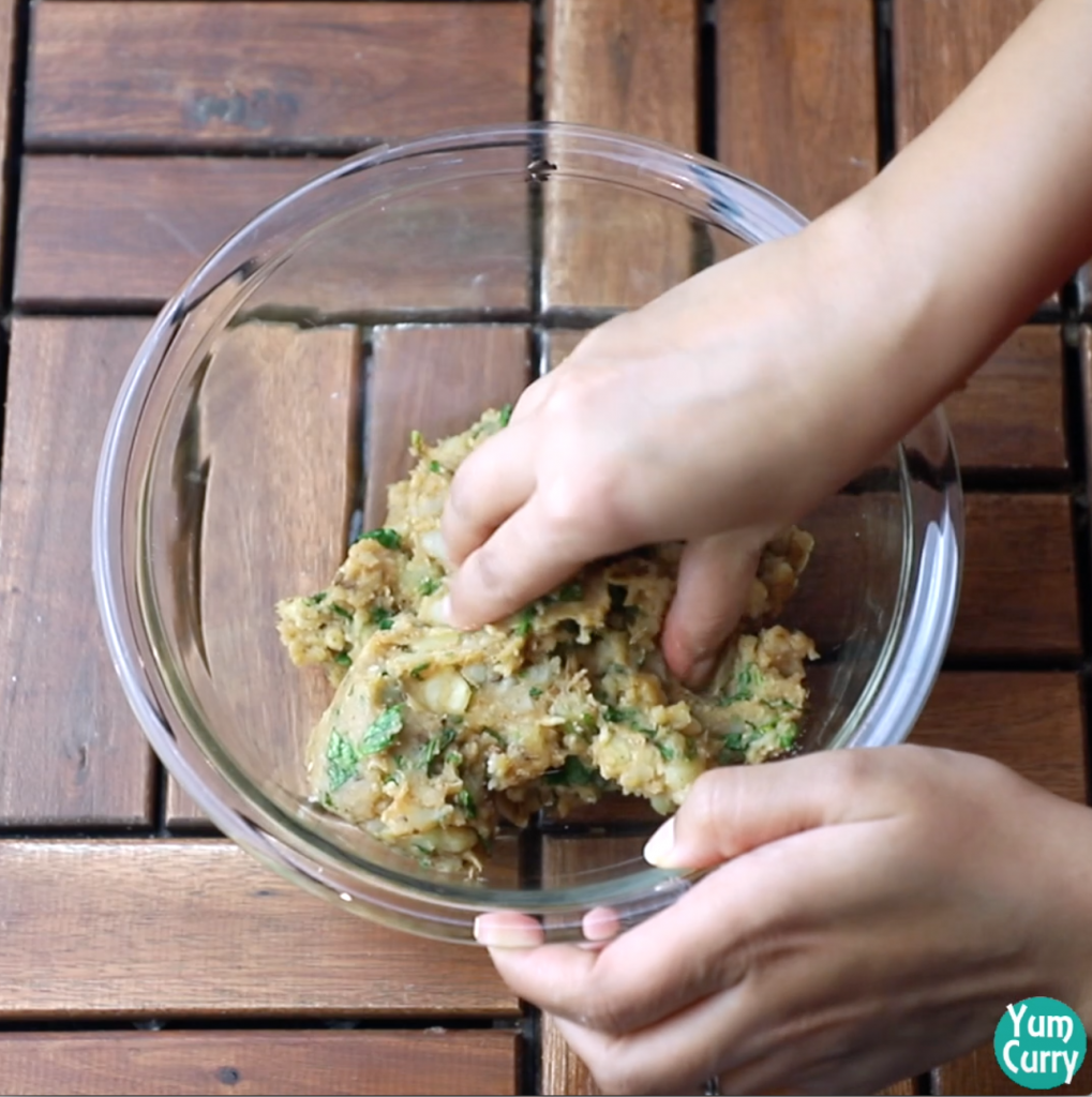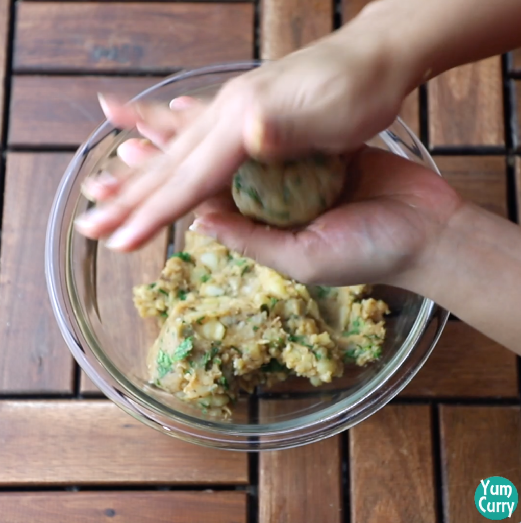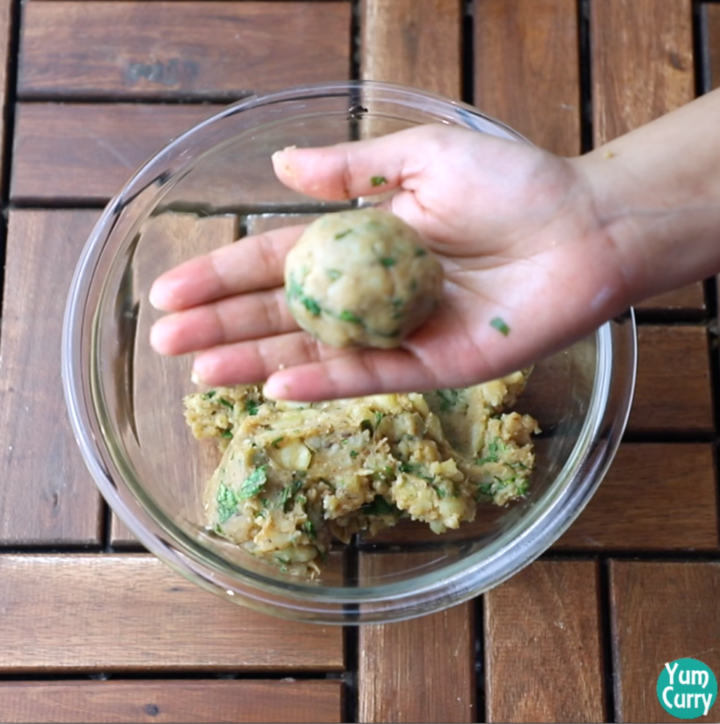 • When the filling is not too hot to handle, use your palm and make small balls out of it.