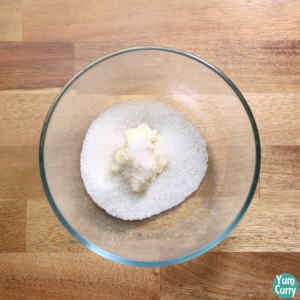 3. Take room temperature butter and sugar in a bowl and mix it together using a hand whisker.