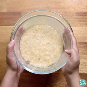 2. If you don’t have ripe bananas, bake them in oven at 200°C for 10 minutes.