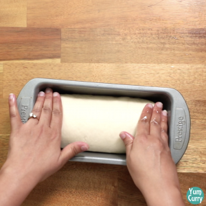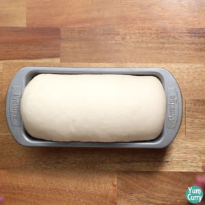 - Once the dough doubles in size, roll it a little. Make 3 folds of the rolled dough to match the size of the bread baking pan.