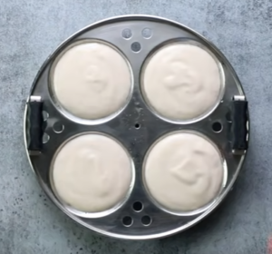 • Take the idli plates and grease them with a little amount of oil.