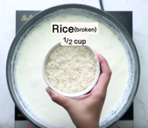 • While it is boiling add half a cup of broken rice into that and let it cook.