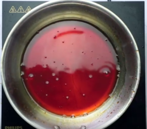8. After few moments, the caramelizing sugar turns brown or red in colour.
