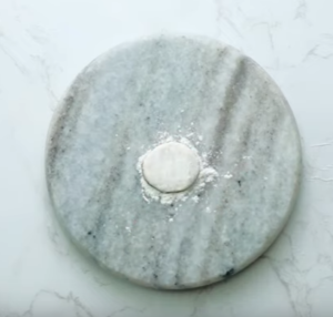 - To fold and make the momos, make the dough into small dough balls and dust them on either side with dry flour. Roll them into small thin circular sheets.