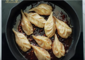 - When it is attaining the saucy texture, add the steamed momos to the pan and coat them well with the sauce on all the sides of the momos. It is appreciable if we add the momos when it is warm because it may help with gelling of the sauce on the momos and enhance the taste of the dish.