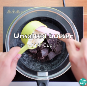 2. Add chocolate and unsalted butter and mix it welleggless chocolate brownie 2eggless chocolate brownie 3