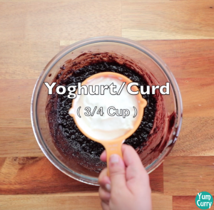 6. add yogurt and mix it welleggless chocolate brownie 9eggless chocolate brownie 10