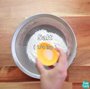 7. now place a sifter above the bowl and add flour and salt and sift iteggless chocolate brownie 11