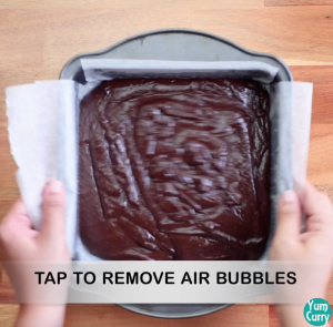 9. tap the tray to remove air bubbleseggless chocolate brownie 13