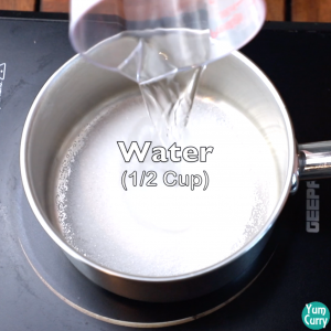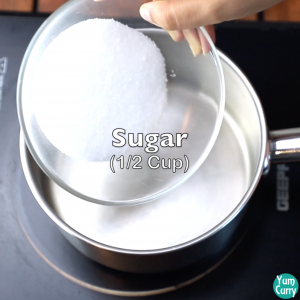- Take a pan, add sugar and water to it.