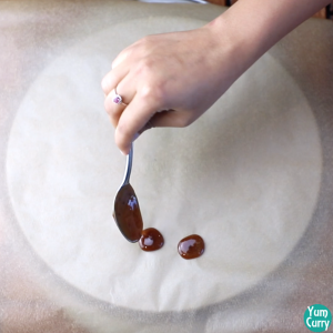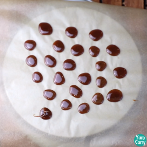 - Now take the hot syrup in a spoon and drop small portion of it on the parchment paper. Make as many as you can. Let it set for 10-15 minutes.