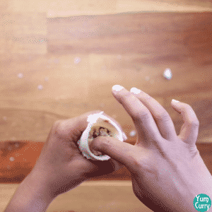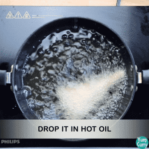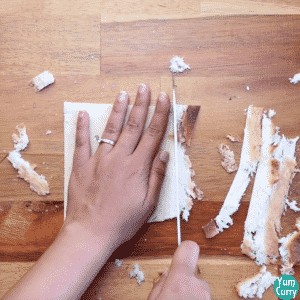 - Now to prepare crispy bread snacks, drop it in hot oil