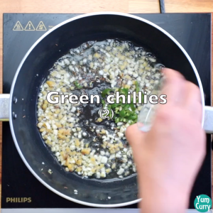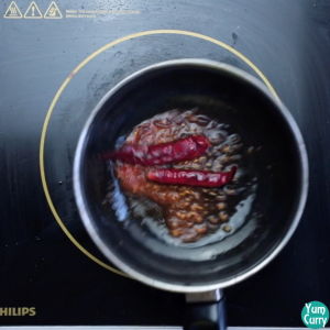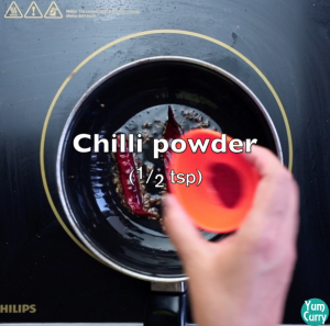 - add ghee and cumin seeds, dry red chilies and chilli powder let it crackle