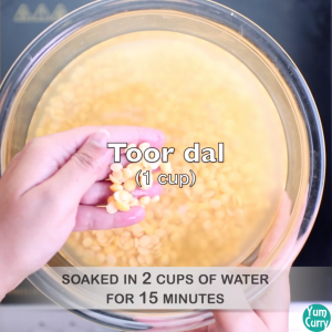 - take toor dal soaked in water for 15 minutes add it in a pressure cooker