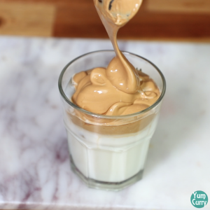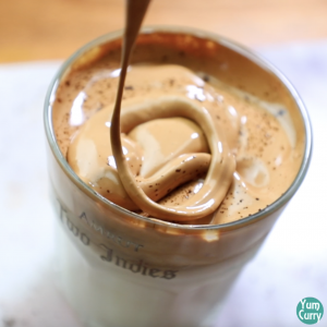 The difference between cold coffee recipe and dalgona is the texture and the use of ice cream. The cold coffee is the blended milk, coffee, ice and ice cream mixture. Dalgona doesn’t contain ice cream in it.