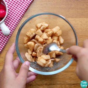 • To prepare french roast rolls first add chopped and sliced apple banana and cinnamon powder in a bowl and mix it well