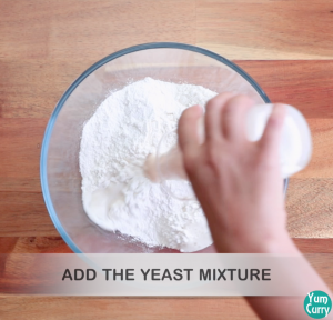 - add the yeast mixture and olive and mix it well