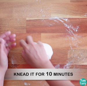 - add some flour and knead it for 10 minutes