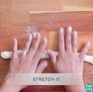 - now add some flour and stretch it