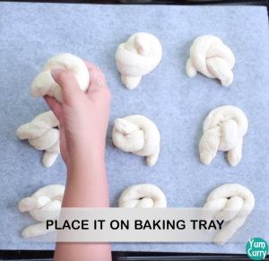 - make a knot, place it on a baking tray and leave it for an hour