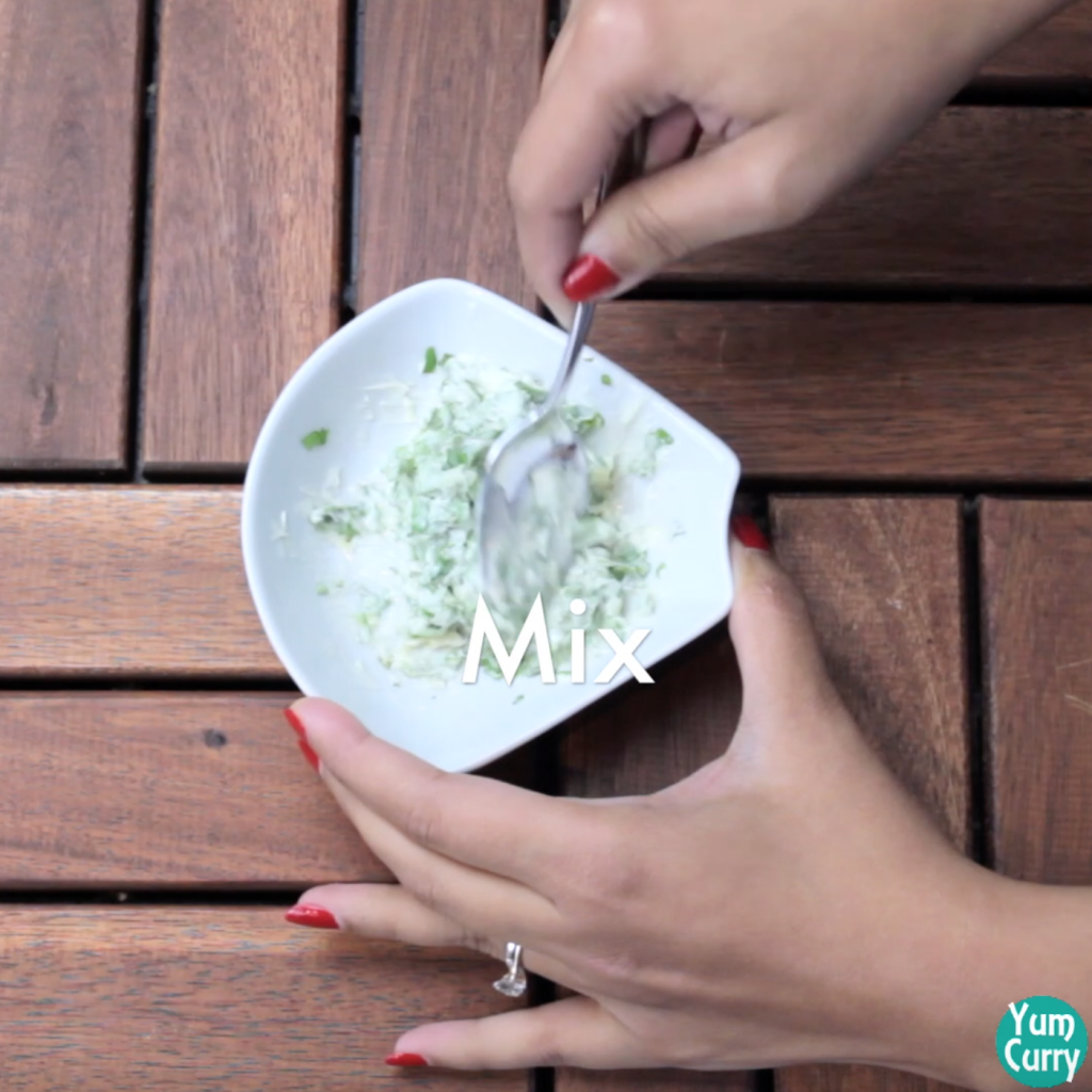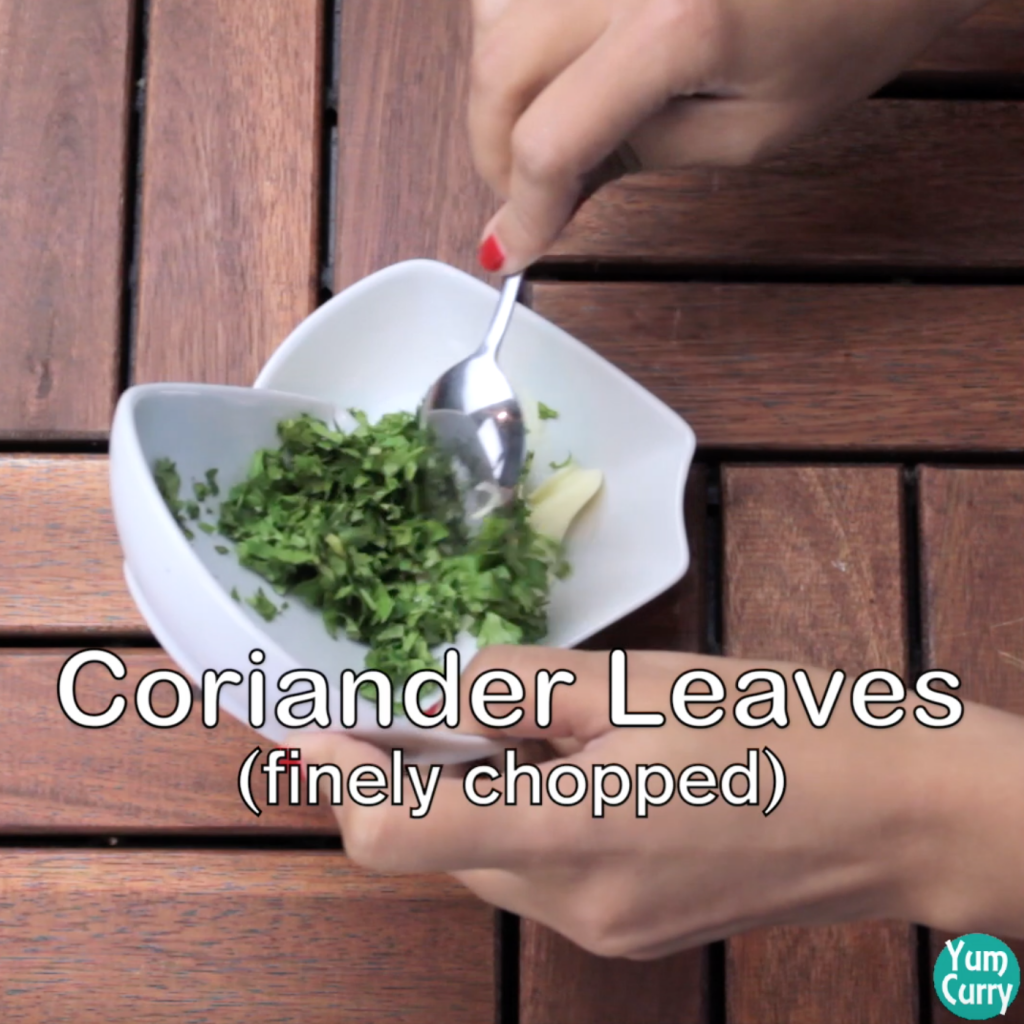 • Add minced garlic and finely chopped coriander leaves to it. Mix well.
