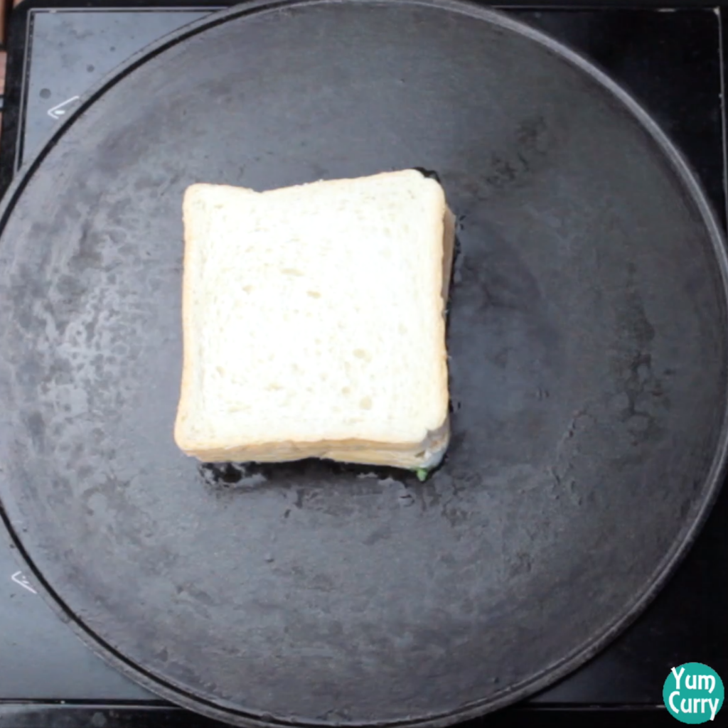 5. Grill the sandwich on hot tawa/pan. (butter side on tawa/pan)