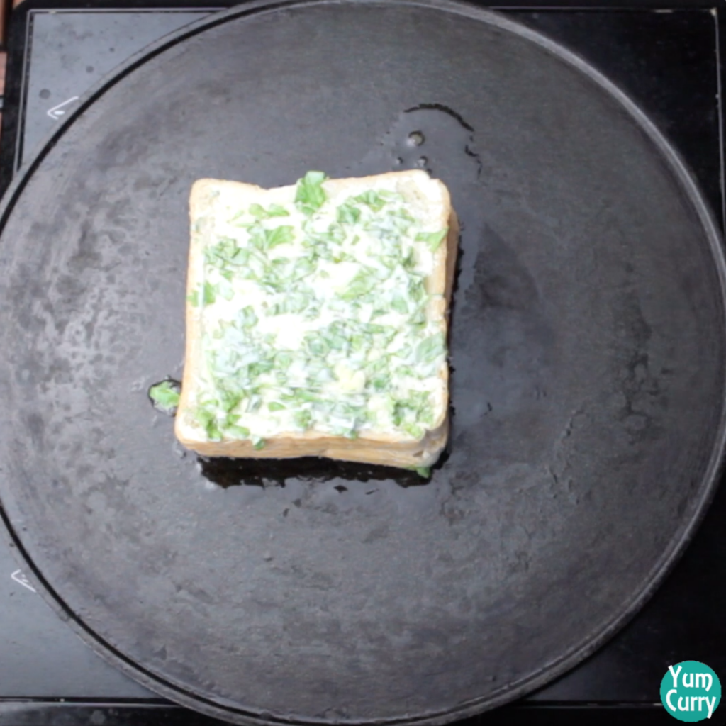 • Apply the butter mixture on the other side of the bread. Grill on both sides.