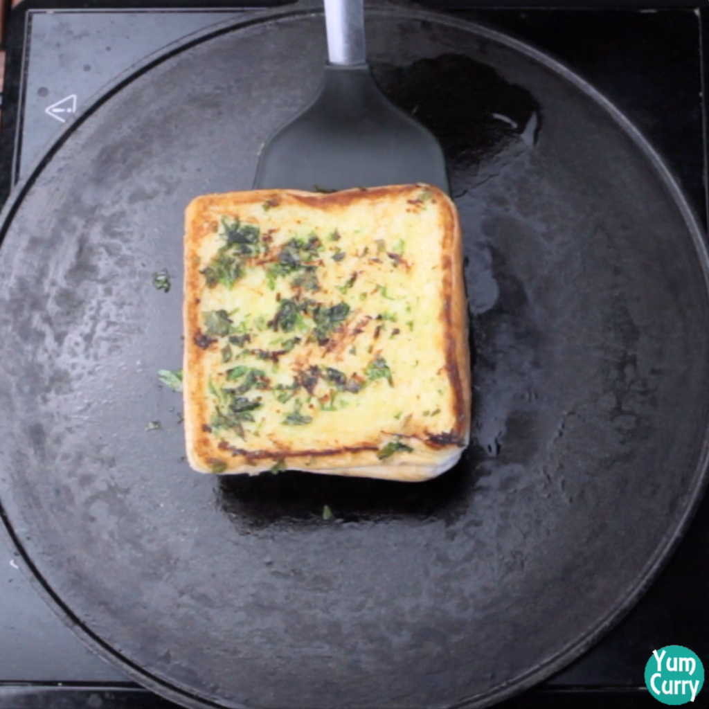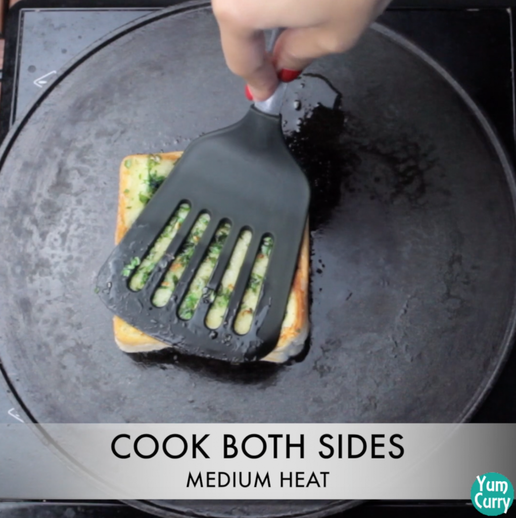 6. Apply the butter mixture on the other side of the bread. Grill on both sides.