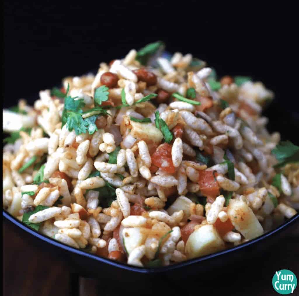 For make it more healthy I generally prefer to add sprouted moong beans and roasted peanuts in to the puffed rice. Lime juice for tangy flavour and sprinkle some chaat masala.