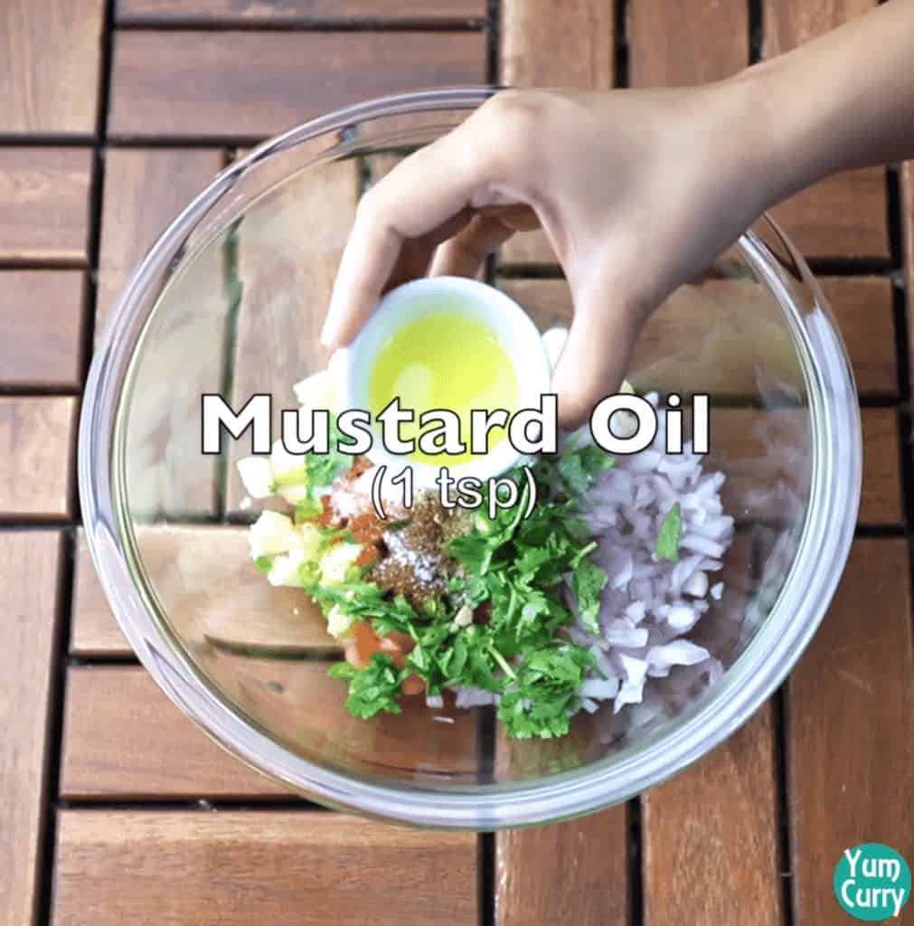 - Add mustard oil, fried peanuts and some lime juice for tangy flavour.