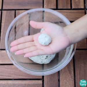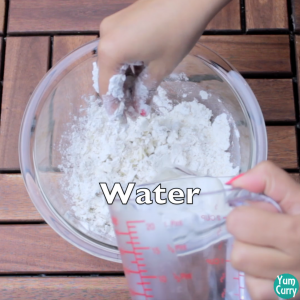 - Add water in small portions and knead it to form a firm dough.