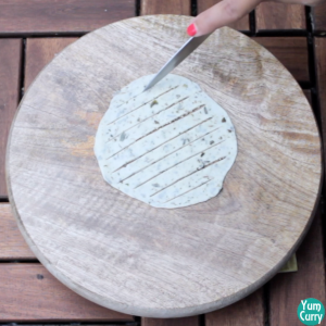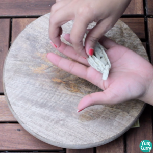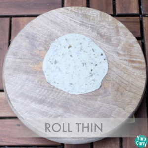 - Take very small portion of the dough (1/4 of chapati) and roll it between your palm to make small ball. Roll it thin.