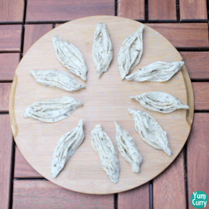 Karela mathri or cage mathri is also known as elo jhelo nimki in Bengal. My mom always make these in diwali or holi festival. This is a perfect snack for festival as it’s quite interesting in shape and it will be really different from what everyone will make.