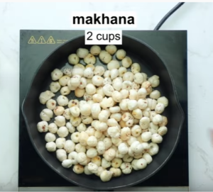 2. In that, add 2 cups of Makhana and roast till they turn crispy. Keep them aside.Makhana bhel