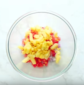 • To this, add a cup of boiled potato and 4 tbsp of raw mango.