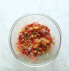 10. Bring all the ingredients together and serve the makhana bhel with the toppings of your choice.Makhana bhel