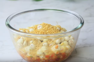 Popcorn bhel- We have popcorn as the main ingredient of the chat.