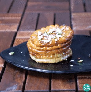 9. Take it out from the sugar syrup and garnish with some chopped pistachio and almonds.