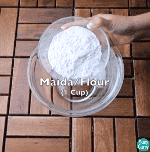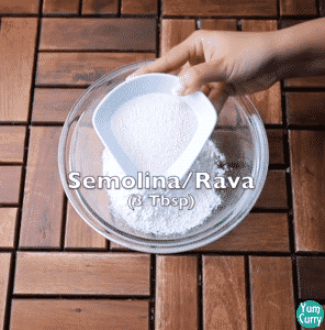 1. For making malpua batter, take all purpose flour and semolina(raw/sooji) in a mixing bowl.
