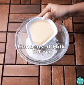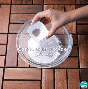 2. Add cardamom powder, fennel seeds and condensed milk.
