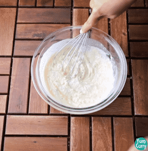4. Mix all ingredient with whisk, add more milk until you get desired consistency batter.