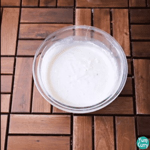 3. We need moderately thin batter for malpua, so add milk in 2-3 parts. For lamp free batter add little milk at a time.