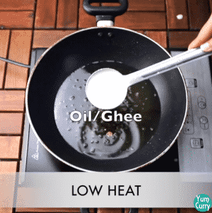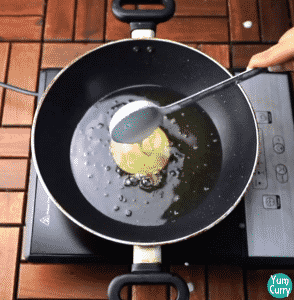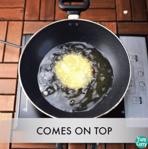 2. Take a serving spoon fill with batter and pour batter in to the hot oil on low heat.