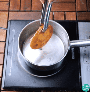 3. Dip hot malpua in hot sugar so it can absorb sugar syrup nicely.