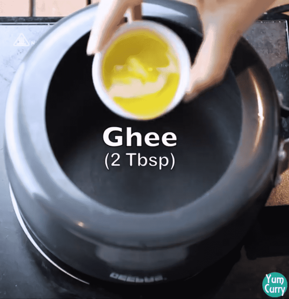 2. Heat the pressure cooker on low-medium heat and add clarified butter (Ghee) or oil.