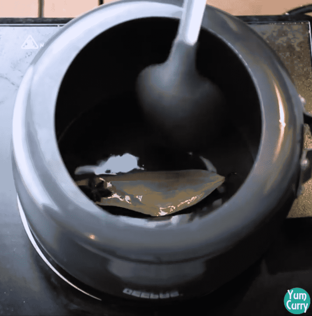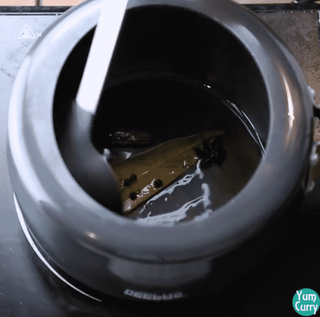• Add whole spices bay leaf, cinnamon and star anise sauté till the oil become fragrant.