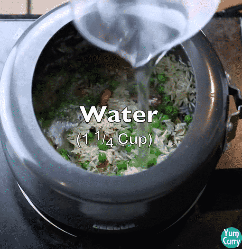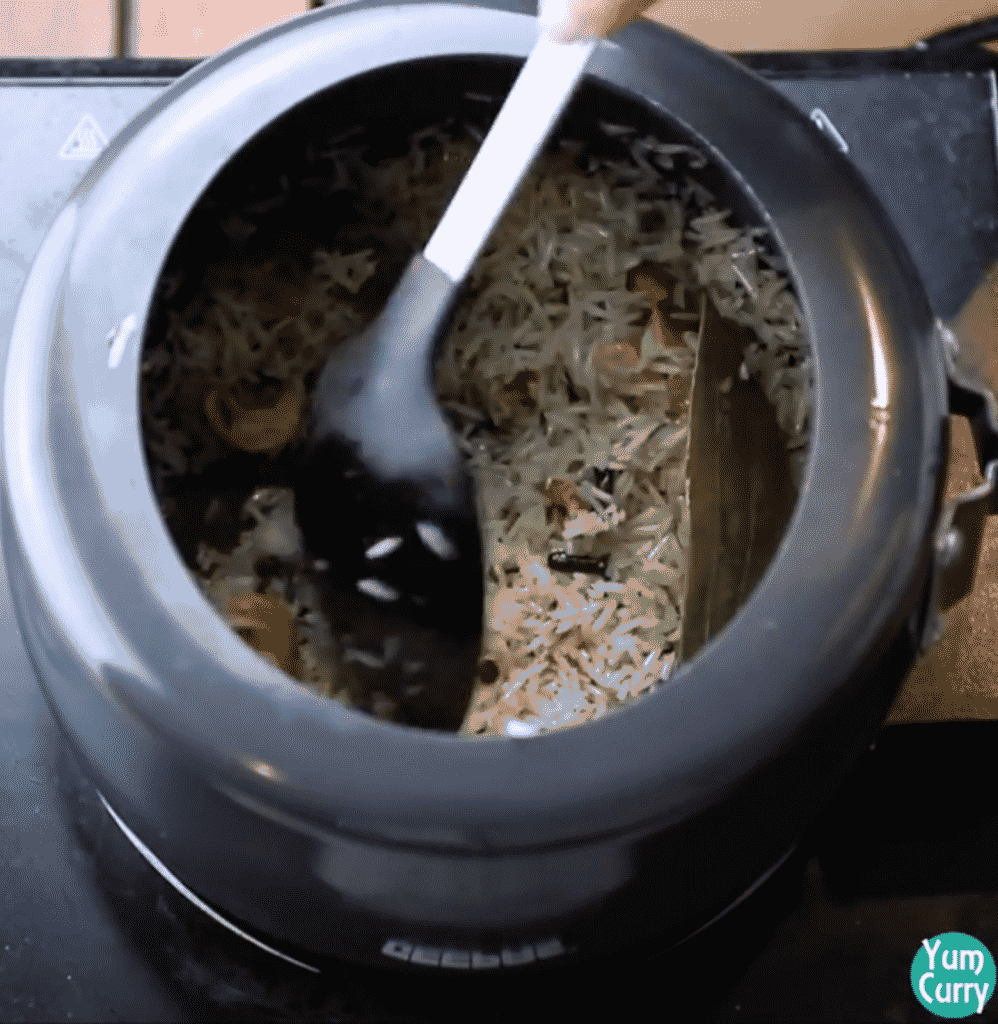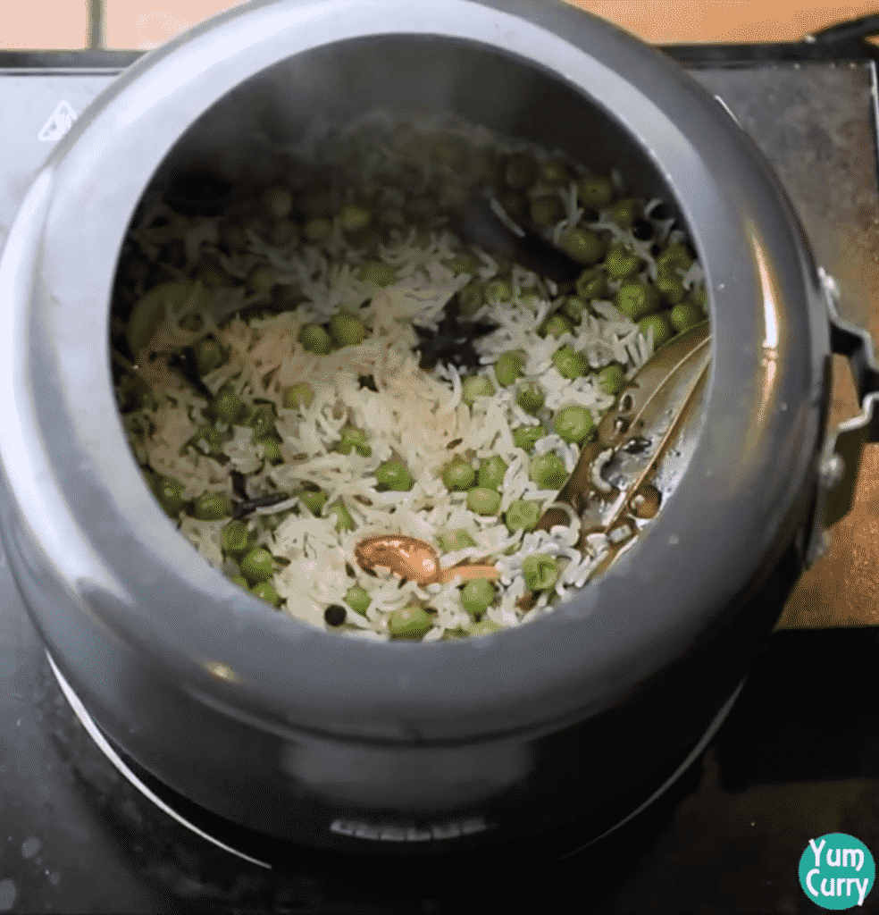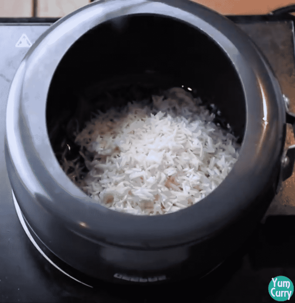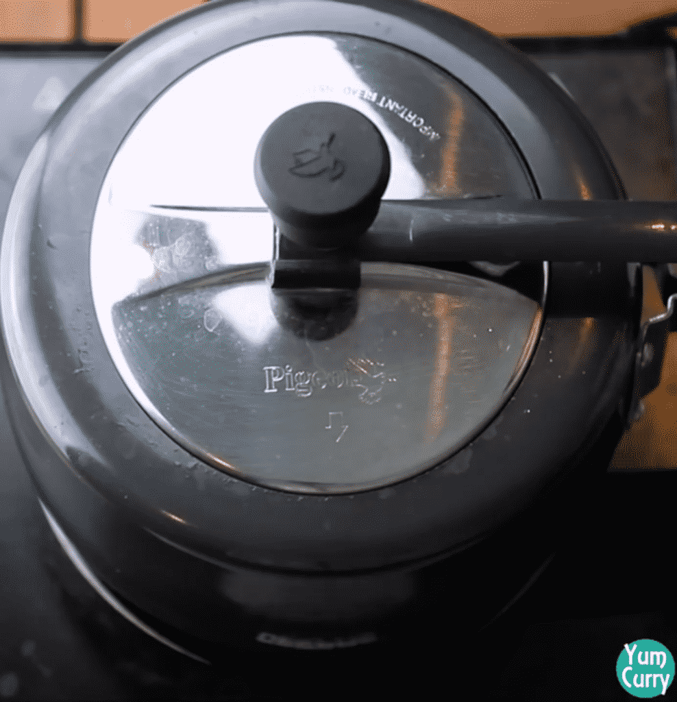 10. Close the lid and pressure cook rice on medium heat for 2 whistle.