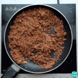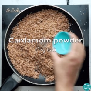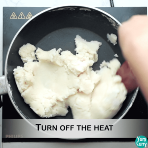 • Reduce the heat and add rice flour and mix it well until it comes together